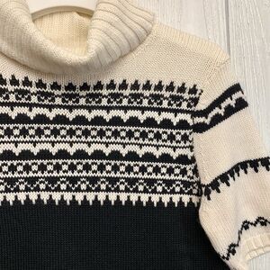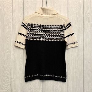 LOFT Cream Black Short Sleeve Turtleneck Sweater Small