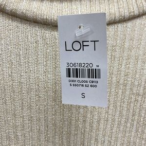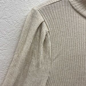 LOFT Cream Gold Knit Puff Sleeve Knit Top S