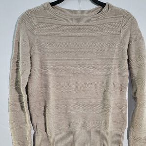 LOFT Cream Ivory 100% Cotton Cable Knit Sweater Crew Neck Women XS