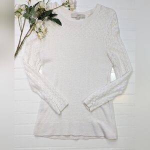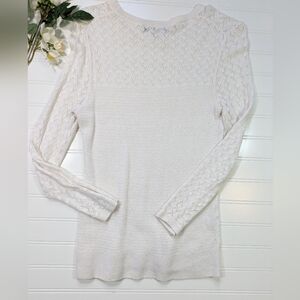 Super cute lightweight cream linen blend pointelle sweater by Loft.