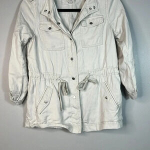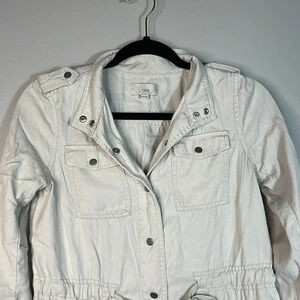 LOFT Cream Lightweight Utility Jacket with Drawstring Waist - XS Petite - EUC
