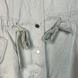Elevate your casual style with this LOFT cream lightweight utility jacket. Designed with a flattering drawstring waist and rolled-up sleeves with button tabs, this XS petite jacket offers both function and fashion. Crafted from soft lyocell, it’s perfect for layering on mild days. In Excellent Used Condition (EUC), this jacket is a versatile addition to any wardrobe.