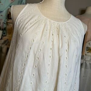 LOFT Cream Pleated Eyelet Sleeveless Blouse Sz M