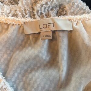 Elegant cream blouse with textured fabric. Features a wide collar and long sleeves. Perfect for a chic look.