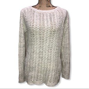 Beautiful cream/off-white woven open knit sweater. Side slits with banded hem and cuffs.