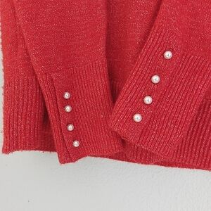 Loft Crewneck pressimon/ Red Perfect  for the Holidays it has speck shimmer sweater with pearl.button accent women's  size.Small in Excellent  condition with no visible flaws.