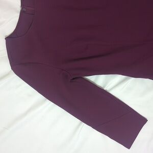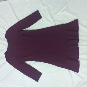 LOFT Crew Neck 3/4 Sleeve Fit And Flare Dress, Color Burgundy Size 8