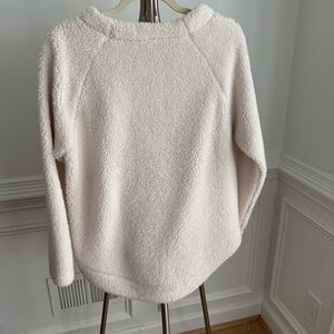 Cream plush sherpa crewneck pull over sweatshirt, EUC, curved hem, size small.