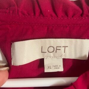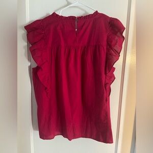 Chic crimson blouse with ruffle accents. Sleeveless design. Ideal for versatile styling.