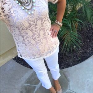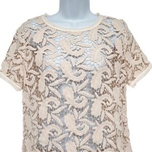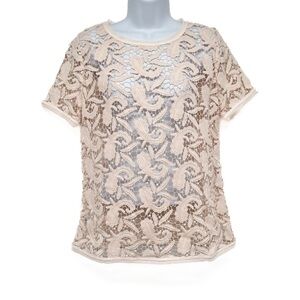 LOFT Crochet Lace Paisley Cutout Sheer Overlay Blouse Top Ballet Pink Small