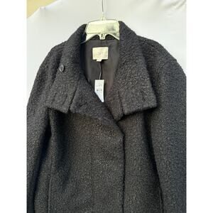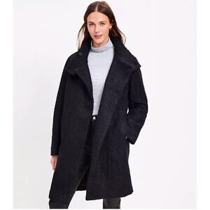 LOFT Curly Funnel Neck Black Peacoat Jacket Size Medium NWT