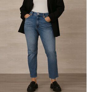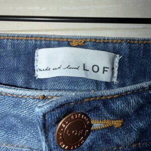 Keywords: LOFT jeans, curvy fit denim, high rise skinny, ankle jeans, raw hem, dark wash, flattering stretch denim