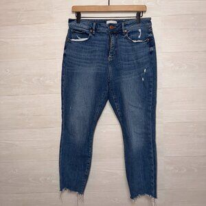 LOFT Curvy High Waisted Ankle Skinny Jeans Size 8/29 Raw Hem Dark Wash Denim
