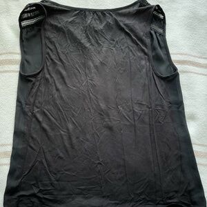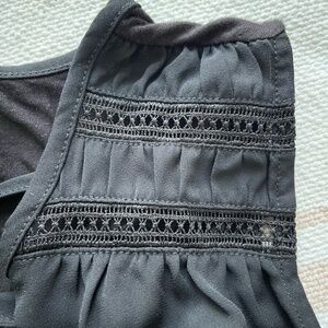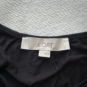 LOFT Cutout Tie Neck Mixed Media Shell - Color: Black, Size: Small
