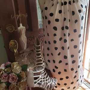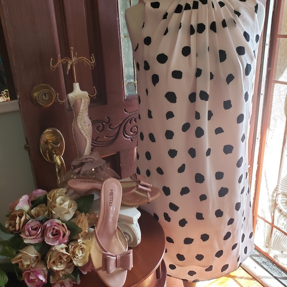 LOFT baby pink dress with black polka-dots. (Waist strap missing) (COLOR MAY VARY DUE TO LIGHTING, ACCESSORIES AND SHOES ARE NOT INCLUDED)