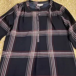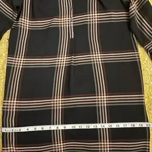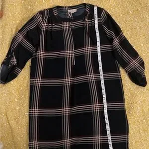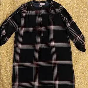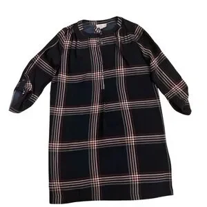 Stylish plaid dress with long sleeves. Features a classic check pattern.