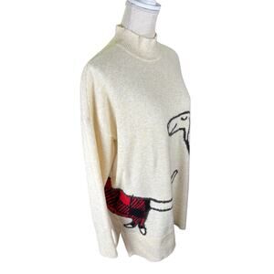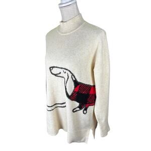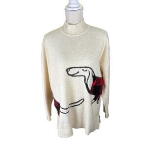LOFT Dachshund Dog Wool Blend Mock Neck Pullover Sweater Women's Large Cream