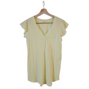 LOFT Daffodil Yellow Spring Henley Half Ruffled Sleeve Tee Cotton Blend S