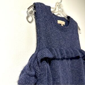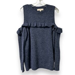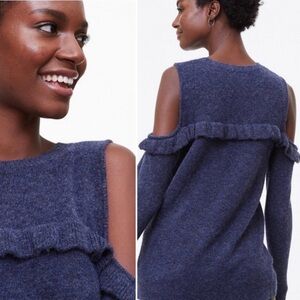 LOFT Dark Blue Cold Ruffle Shoulder Knit Sweater Women’s Size Medium Feminine