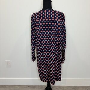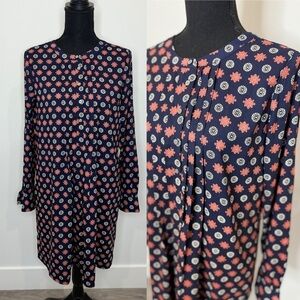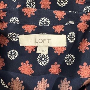 LOFT Dark Blue Long Sleeve Floral Print Midi Dress (S)
