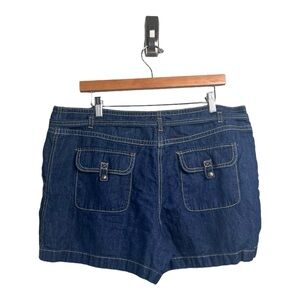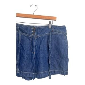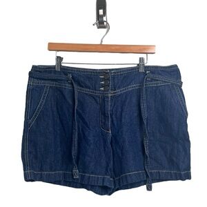 LOFT Dark Denim Jeans Shorts Cotton Linen Blend Tie Waist Size 16 NWOT
