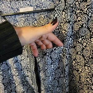 LOFT Dark Navy Blue and White Paisley Long Tab Sleeve Romper Playsuit sz 2