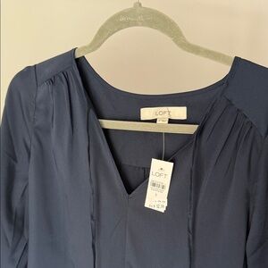 LOFT Deep Blue Ruffle Hem Blouse