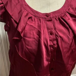LOFT Deep Red Ruffle Blouse