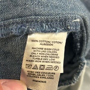 Stylish denim blue shirt dress perfect for casual outings. Features a button-down front and rolled-up sleeves for a relaxed look. Washed, never worn!