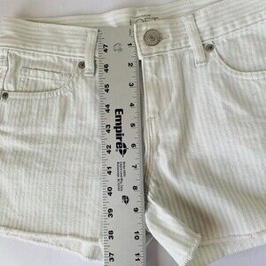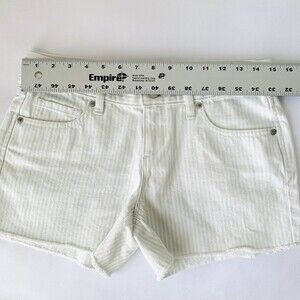 LOFT Denim Shorts 25 Pastel Blue White Candy Stripe Raw Hem Cutoff Preppy Beach