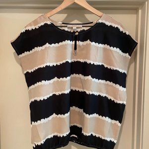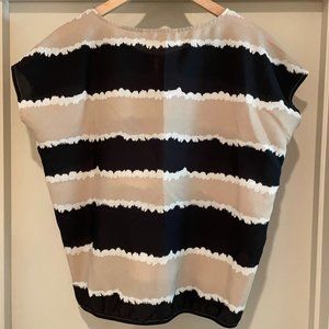 Cute LOFT top with an almost dip-dyed print of black, white, and tan. SEE PHOTOS for one, very small stain.