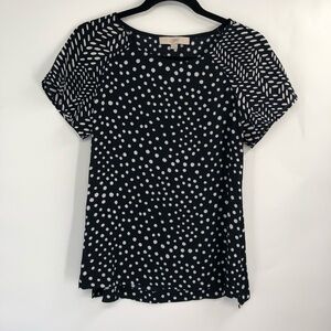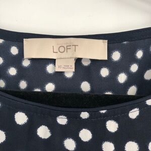 LOFT Dot Print Blouse Top Blue White Polka Dots Mixed Print Flowy XS Navy