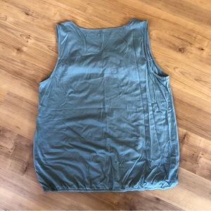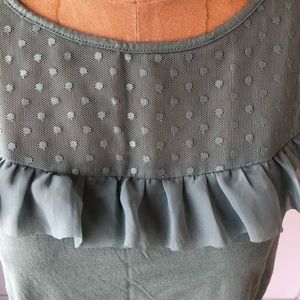 Ann Taylor LOFT Ruffle Tank Polka dot pattern on netting Cinched waist Size large (L) May be wrinkled from storage and shipping