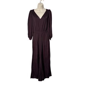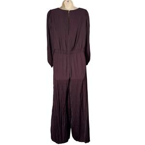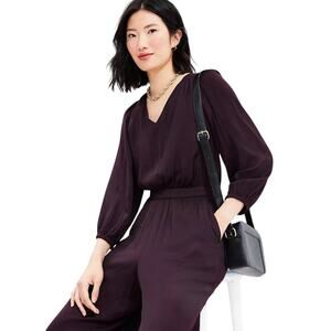 LOFT Drapey V-Neck Flowy Straight Leg Jumpsuit Deep Bordeaux Size 4