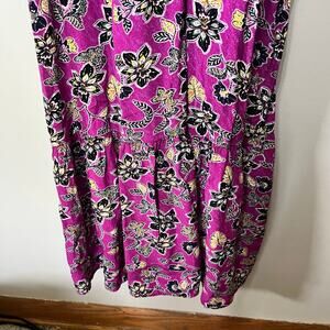 LOFT Dress Maxi BabyDoll Magenta Black Gold Floral Viscose Cottagecore Summer 8