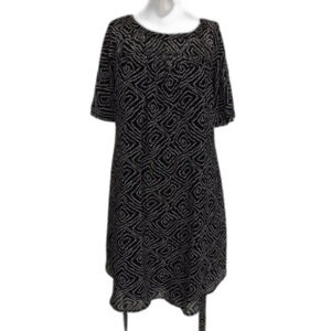 LOFT Dress, S, Black/White Geo print, 2 piece/Slip, Sash Belt, Short Sleeves