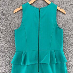 LOFT Dress Womens 6 Petite Green Mini Peplum Sheath Sleeveless Pleated Stretch