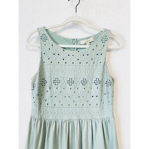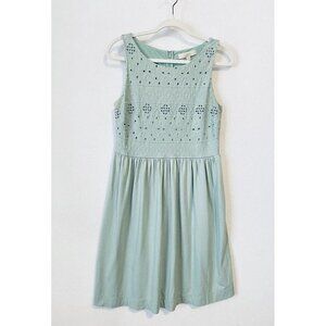 LOFT Dress Womens 8 Fit and Flare Sleeveless Eyelet Cotton Modal Knit Mint Green