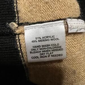LOFT Dress Womens Large Black Brown Striped Merino Wool Blend Sweater Mini