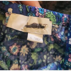 LOFT Dress Women's Large Blue Floral Shirred Flounce Maxi Cotton Cottage