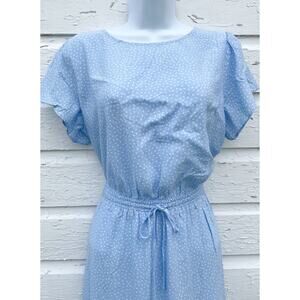 LOFT Dress Womens M Light Blue Polka Dot Godet Ruffle Tie Waist Minimalist