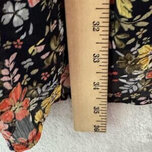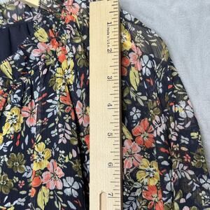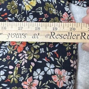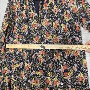 LOFT Dress Womens Medium Black Floral Long Sleeve Ruffle Neck Boho Tunic Lined