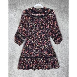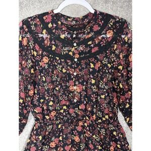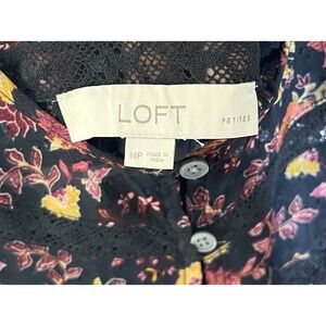 LOFT Dress Womens Size Medium Petite 3/4 Sheer Puff Sleeve Black Floral Lined
