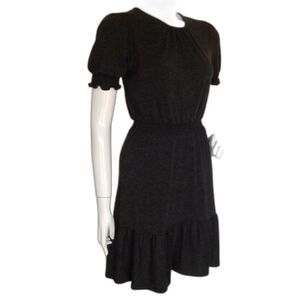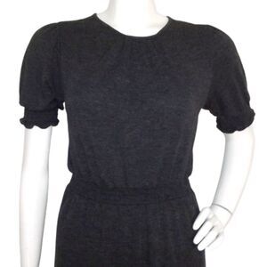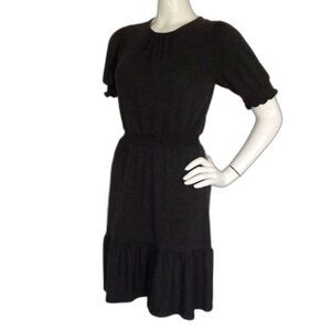 LOFT Dress, XS, Charcoal Gray Heathered Knit, Smocked Flounce, Short sleeves