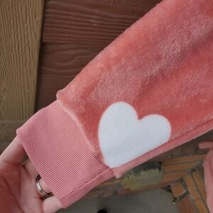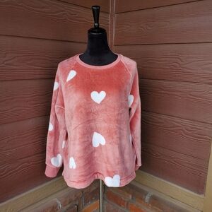 LOFT Dusty Rose and White Heart Velour Pullover Top Women's Size Large