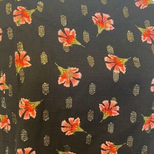 LOFT EUC Black Pink Floral Gold Metallic Long Sleeve Blouse Sz XS