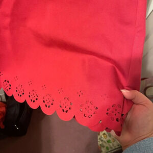 Pre owned like new. This is a gorgeous red/pink color dress.Dress has super pretty eyelet trim. WOMENS size 12. Dress has a good amount of stretch!