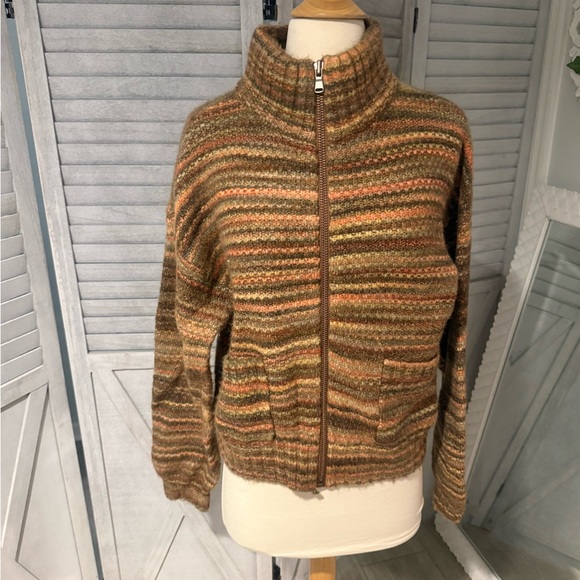 Warm knit sweater with earthy hues. Perfect for cozy days.