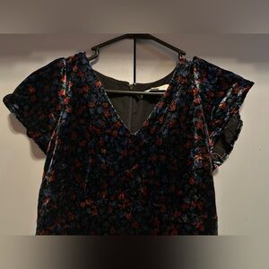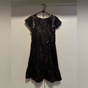 Elegant black dress with colorful floral accents and a velvet like feel! Ideal for any event.