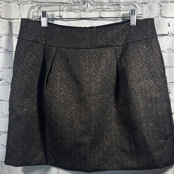 LOFT Elegant Black and Gold Patterned Mini Skirt
